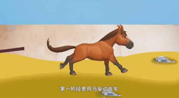 第一階段是用馬驅動戰車 ,雖然速度有所提高,但卻受地形限制。