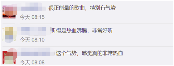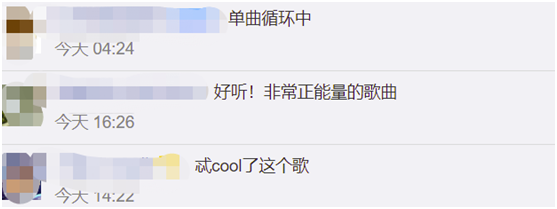還有網友説,這首正能量的歌曲在接近春節的時候發佈,“很應景啊”;“新的一年從這首正能量的歌開始”。↓
