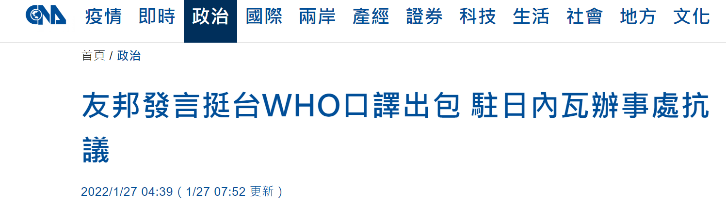 急了!世衞組織口譯員未翻譯台“友邦”“挺台”發言,台當局提“抗議”