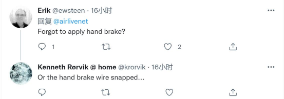 另一個網友緊跟着回應:“或者是手剎線斷了……”