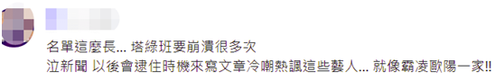 也有網友説,名單這麼長,綠營要崩潰很多次,“三立新聞”以後會逮住機會寫文章冷嘲熱諷這些藝人。↓