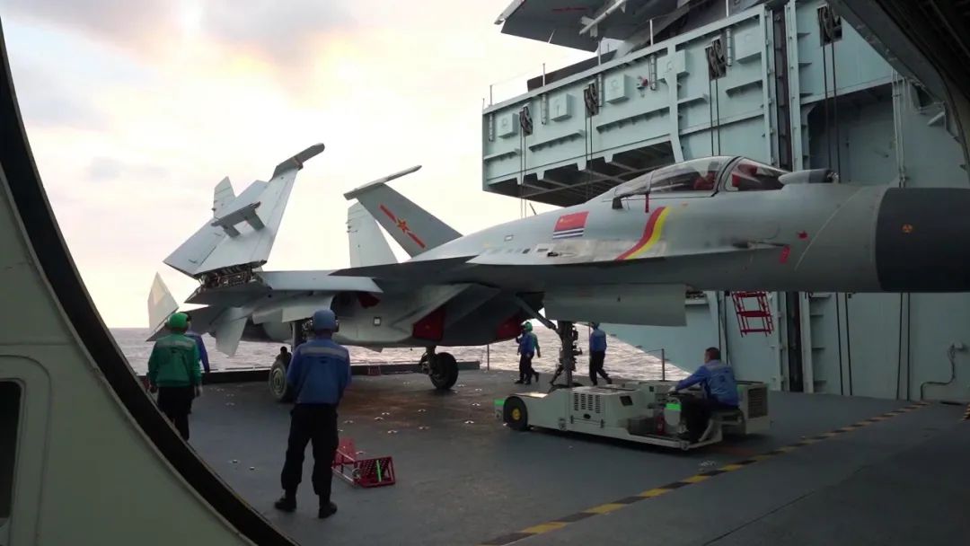 隨着機庫升降平台的升起,海軍艦載航空兵機械技師管洪剛保障的殲-15艦載戰鬥機被轉運到飛行甲板。他帶領機組成員開始飛行前的各項準備工作。