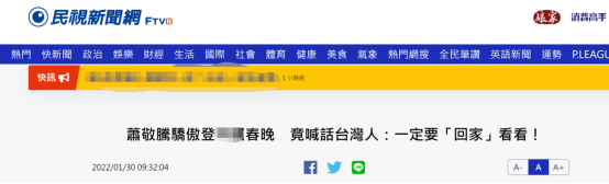 然而不出所料,島內的一些親綠媒體又酸了,台灣“民視新聞網”以“蕭敬騰登春晚,竟喊話台灣人:‘回家’看看!”為題陰陽怪氣的報道了蕭敬騰接受央視採訪的內容,還借一些親綠網友之口批評蕭敬騰,“人民幣真香”、“你的家在那裏就乖乖待着就好,別來台灣了”云云。