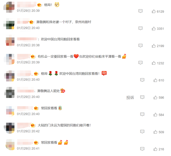 此外,對於蕭敬騰呼籲台灣同胞回家看看,有不少微博網友都表示支持和稱讚。↓