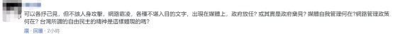 更有網友看不下去了並表示,“可以各抒己見,但不該人身攻擊,網絡霸凌,各種不堪入目的文字,出現在媒體上,民進黨當局(就這樣)放任? 或其實是民進黨當局樂見?媒體(指綠媒)自我管理何在?網絡管理政策何在? ”↓