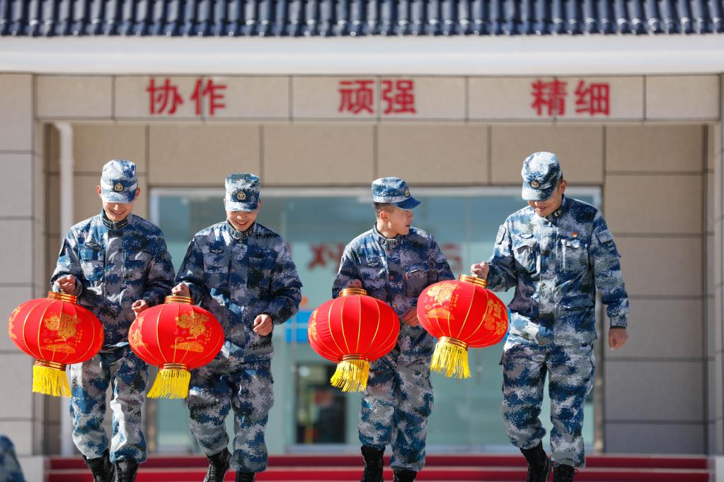 柳樹旁,五六個官兵合力將“家園石”抬到車廂裏。這塊刻着“我愛我家”“永遠忠誠”的巨石,將“落户”在新營區宿舍樓前。“有人的地方就是家。”過年在該單位蹲點的旅副政委喬衞東説,“現在我們搬進了新營區,硬件設施極大改善,陣地也不再被黃沙襲擾,更應不負重託,以更飽滿的工作熱情擔負起守衞祖國領空的神聖使命。”