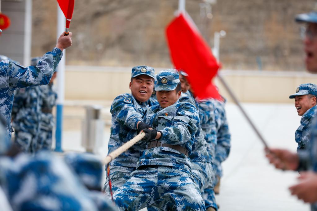 此時的操場上,“加油”聲此起彼伏。各連之間拔河、滾輪胎、攀繩、籃球等比賽正在進行。“節日期間,組織大家練練體能,運動一下。”陳雷笑着説,“今天冬奧會開幕,雖然我們這兒沒有下雪,但大家對體育的熱情一點兒不減,也是在雪域高原聲援我們的冬奧健兒。”