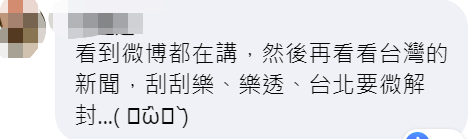 在周軒的臉書下,有島內網友留言附和:“看到微博都在講,然後再看看台灣的新聞,刮刮樂、樂透,台北要微解封……”↓