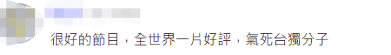 也有網友説,“很好的節目,全世界一片好評,氣死‘台獨’分子。” ↓