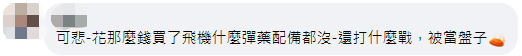 也有人表示,“可悲,花那麼錢買了飛機,什麼彈藥配備都沒,還打什麼戰,被當盤子。”