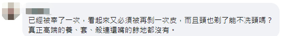 還有網友稱,“已經被宰了一次,看起來又必須被再剝一次皮,而且頭也剃了能不冼頭嗎?真正高端的養、套、殺連還嘴的餘地都沒有。”