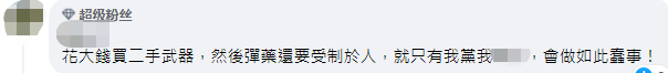 更有人批評民進黨當局,花大錢買二手武器,然後彈藥還要受制於人,就只有民進黨當局會做如此蠢事!