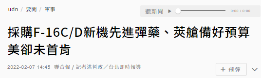 【環球網報道 記者 尹豔輝】據台灣《聯合報》7日報道,台空軍以“鳳揚專案”為名對美採購66架F-16C/D Block 70戰機,同時以“鳳雷專案”為名,編列300餘億元(新台幣)對美採購機隊所需的“狙擊標定莢艙”等各式導彈與莢艙,台方2022年就編列鉅額預算要開始投注,但據瞭解,美方至今未首肯。對此,有島內網友嘲諷,“已經被宰了一次,看起來又必須被再剝一次皮”。