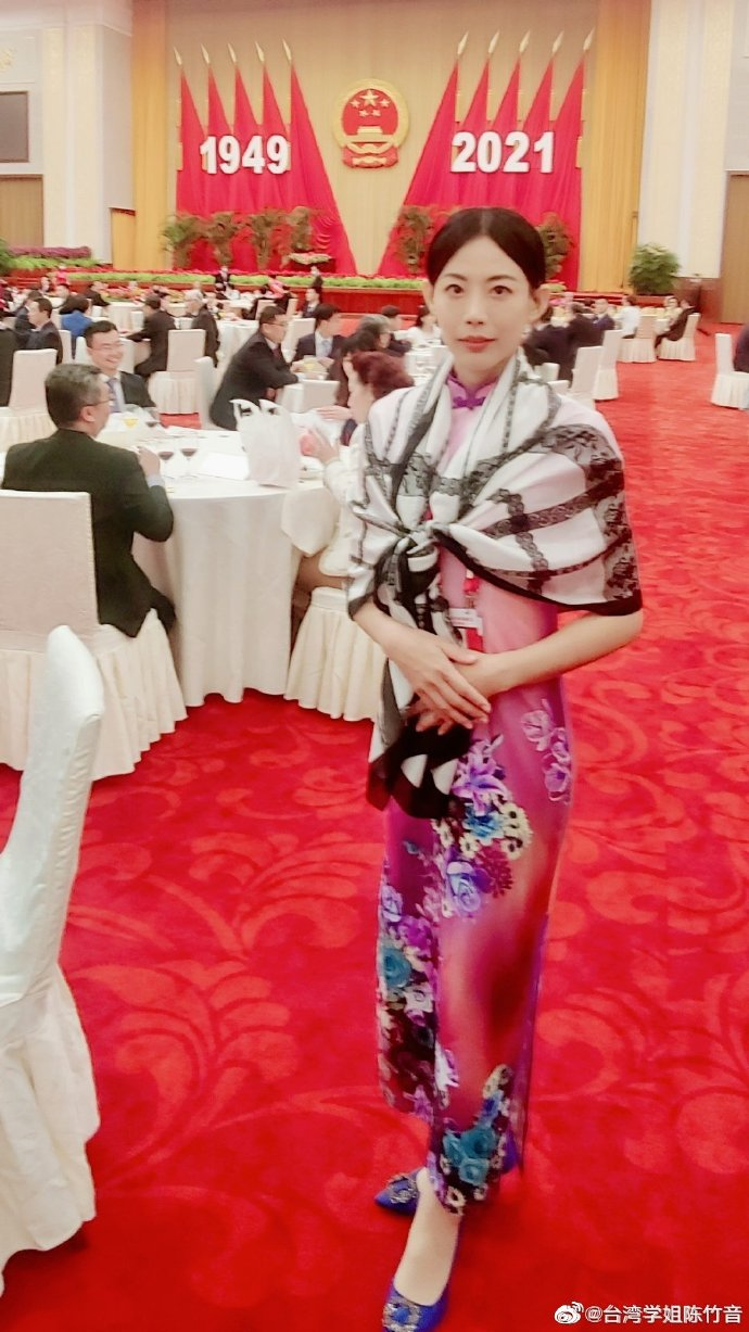 2021年9月28日晚,陳竹音在微博中還曬出自己受邀參加慶祝中華人民共和國成立72週年招待會的請柬和嘉賓證照片,同時感言道:作為一名在寶島台灣土生土長的青年,有機會走進人民大會堂,心中倍感榮耀和感恩:感謝偉大的祖國讓我們台灣同胞有一個家可以回;有強大的祖國做依靠,我們的未來有盼望!恭賀中華人民共和國成立72週年!期盼我的家鄉早日回到祖國懷抱!