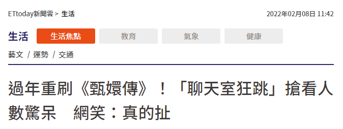 島內電視台春節期間在線重播《甄嬛傳》,觀看人數眾多引發網友熱議