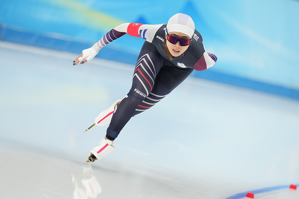 中國台北選手黃鬱婷亮相北京冬奧,衝過終點時現場播放《中國話》