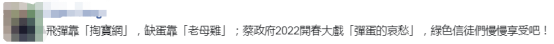 在台媒評論區,也有網友諷刺,“導彈靠‘掏寶網’,缺蛋靠‘老母雞’;蔡‘政府’2022開春大戲‘彈蛋的哀愁’。”“可憐的台灣!缺水缺電連蛋都缺了。”