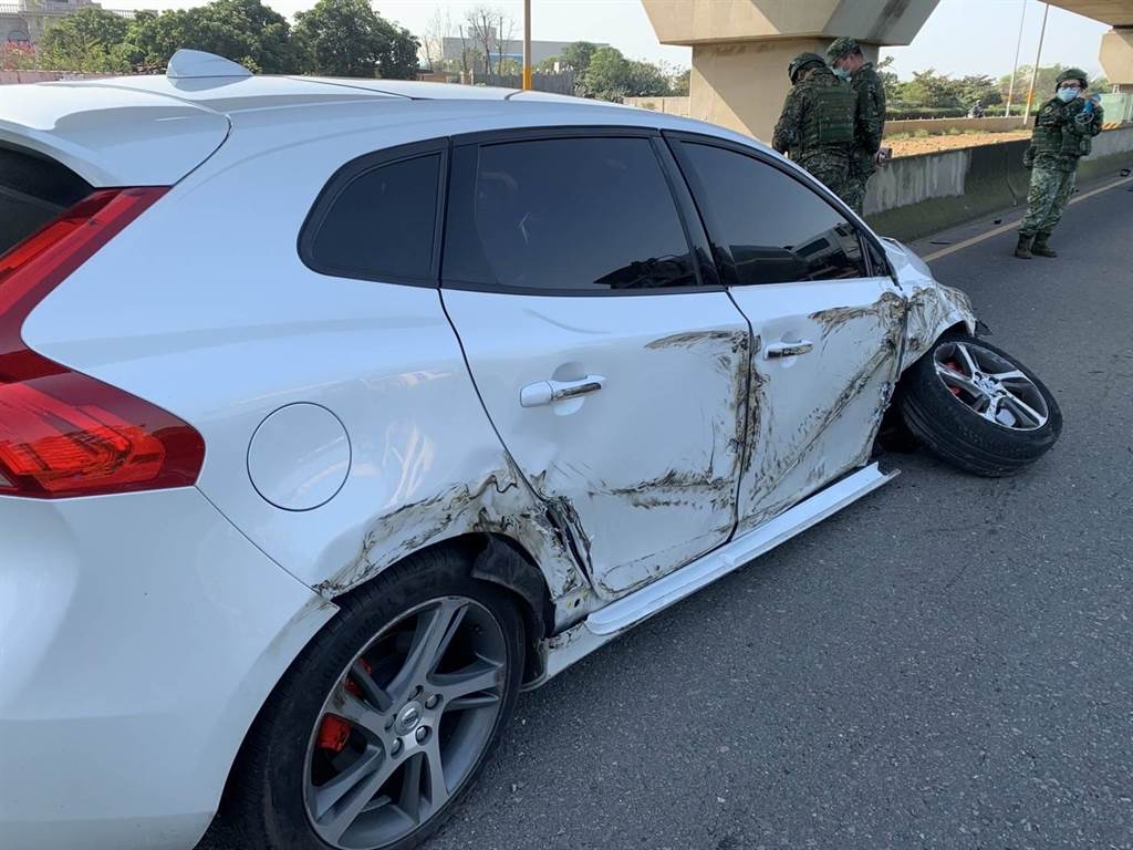 又出車禍!台軍一裝甲車疑似變道不慎將一轎車車頭撞至全毀
