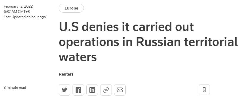 報道稱,美軍發言人凱爾·雷恩斯在聲明中表示,俄方稱美軍在其領海行動的説法是“不真實的”。“我不會對我們潛艇的確切位置發表評論,但我們確實在國際水域進行了飛行、航行作業,並安全進行了(這些活動)”。