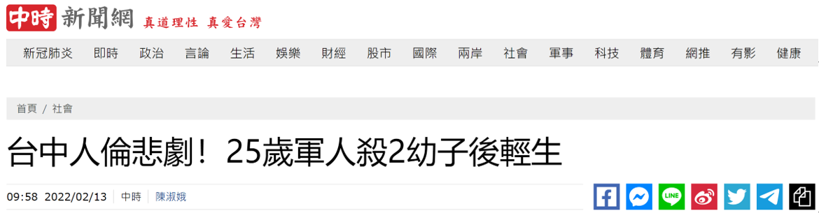 台媒:台軍一士兵疑與妻子感情不和,涉嫌殺害2幼子後跳樓