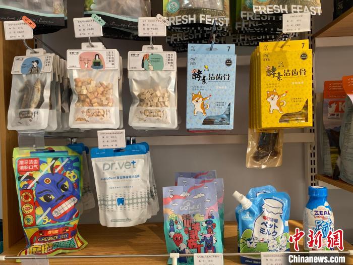 寵物店備受消費者喜歡的零食和寵物用品。 李明芮 攝
