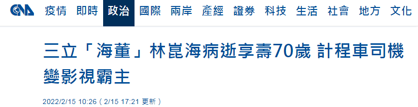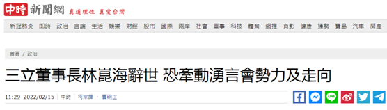 台灣綠媒三立董事長林昆海病亡,台媒:恐牽動綠營內部勢力走向