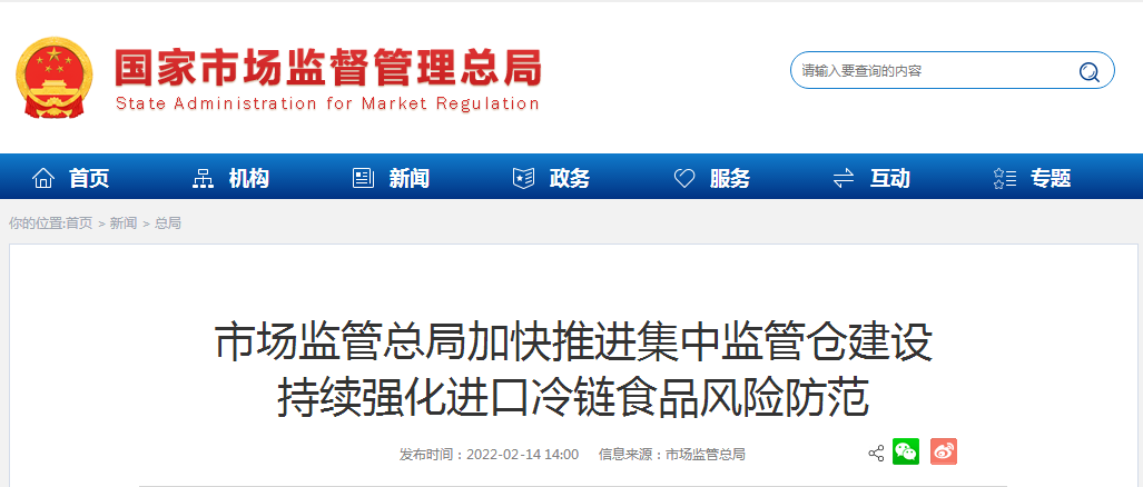 【環球網財經消費資訊 記者 樊俊卿】2月14日,國家市場監督管理總局通過官方網站發佈公告,宣佈市場監管總局將加強進口冷鏈食品信息化追溯,加快推進集中監管倉建設,持續強化全國進口冷鏈食品風險防範。