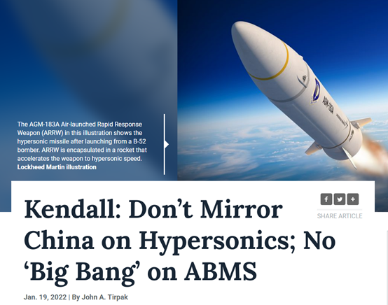 就在上個月,肯德爾也表達了同樣的意見:不要在高超音速武器上照搬中國。