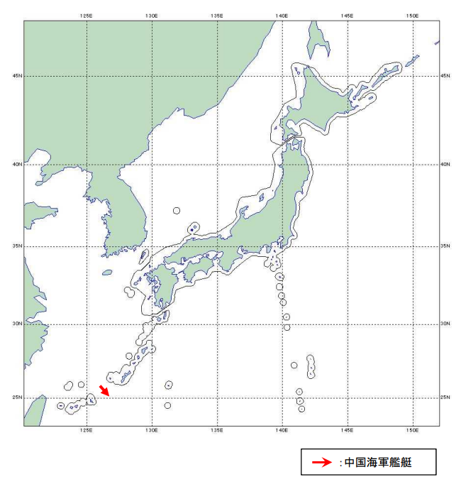 日本防衞省發佈的中國軍艦圖片和穿越宮古海峽示意圖