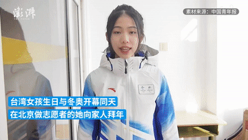 為擔任冬奧志願者,台灣女孩李若筠留京過年,她向在寶島的家人送去視頻“家書”,祝父母和妹妹們虎年吉祥。