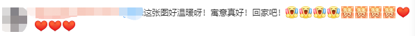 看到這張圖片,有微博網友留言表示,“這畫面挺温暖的!”“這張圖好温暖呀!寓意真好!回家吧!”