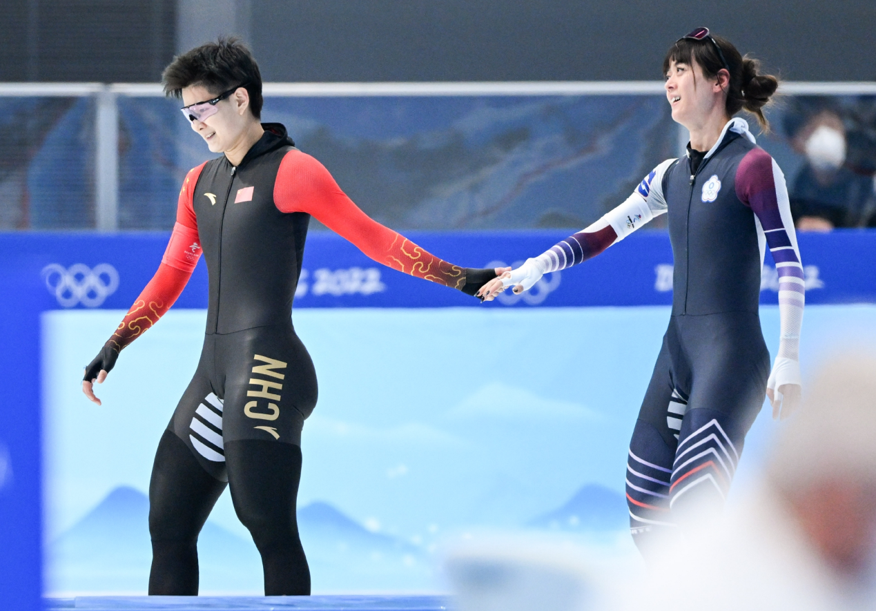 【環球網報道】2月17日,北京冬奧會速度滑冰女子1000米比賽在國家速滑館“冰絲帶”結束,賽後中國隊選手金京珠和中國台北選手黃鬱婷微笑牽手致意。看到這一幕,有網友想起北京冬奧會開幕式中“尋找掉隊小鴿子”的畫面。