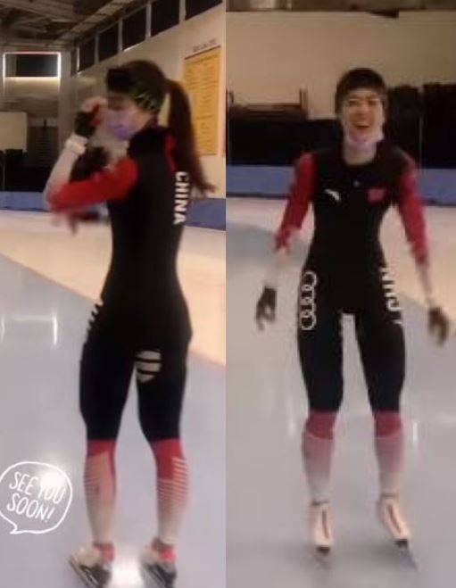 黃鬱婷在美國鹽湖城備戰北京冬奧訓練期間,在其個人社羣網站上傳穿着大陸隊服的視頻,在島內受到關注。↓