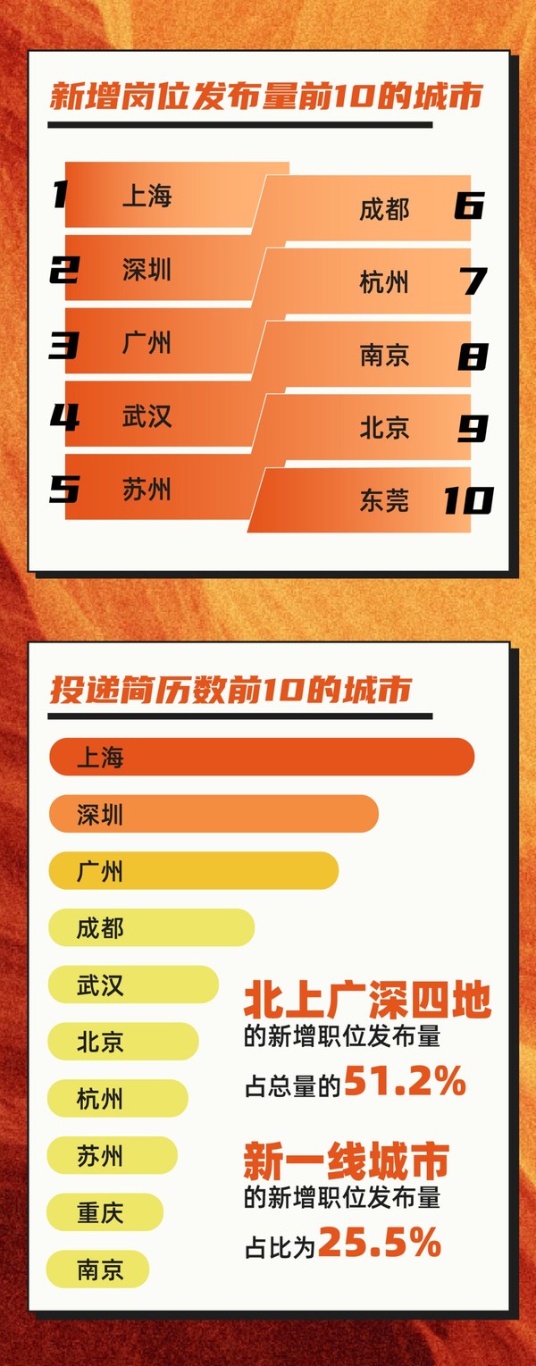 北上廣深佔節後新增職位發佈量的51.2%,新一線佔比上升
