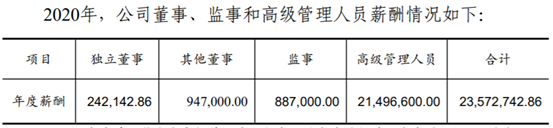 但另一方面公開數據顯示東莞證券的高管人員薪酬非常高,在2017年初發布的招股書中披露,在該公司總共11名專職董監高人員中,年薪低於300萬元的只有董事會秘書及兩名職工監事,當年董事長張運勇先生年薪更是高達430萬元以上;另據東莞證券2020年年報顯示,東莞證券的高級管理人員薪酬總計仍然高達2150萬元左右,全部董監高薪酬支出更是高達2357.27萬元,董事長陳照星的薪酬更是高達548.27萬元。