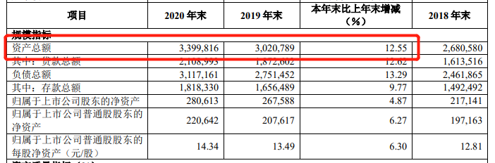 負債總額33755.85億元,較上年末增長8.29%。其中,存款總額19043.63億元,較上年末增長4.73%。