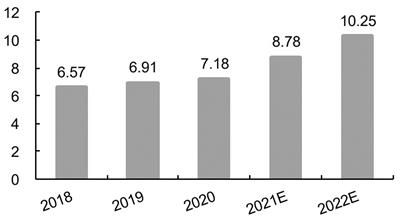 近年來我國養老產業保持穩定增長。艾媒諮詢數據顯示,自2018年以來,中國養老產業市場規模持續擴大。該機構預測,2022年養老產業市場規模將達到10.25萬億元。賽迪顧問也表示,受到政策完善、人口老齡化加速、老年羣體消費觀念轉變等因素的影響,預計2022年中國健康養老產業總體規模將達到9.81萬億元。