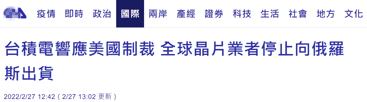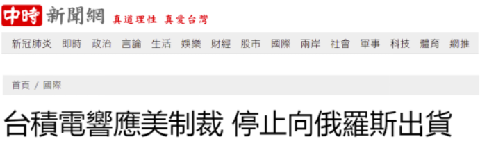 台媒:台積電響應美國製裁,停止向俄羅斯出貨