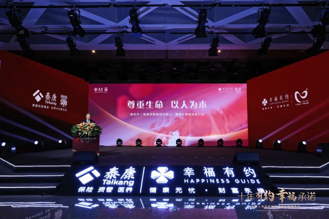 本次發佈會的最後,泰康保險集團創始人、董事長兼首席執行官陳東昇先生髮表了題為《尊重生命以人為本》的閉幕演講。在演講中,陳東昇表示,泰康經過多年的探索、創新形成了一個完整的、打造全生命週期的產品和服務體系,即活力養老、高端醫療、卓絕理財、終極關懷,從個人到家庭到整個家族,從搖籃到天堂的服務體系。這個體系打通了支付體系和服務體系,形成了長壽、健康和財富三大閉環。通過“幸福有約”產品的長期投資,形成複利現象,讓充足的財務資源來滿足未來對養老、健康、康復和終極關懷的需求。