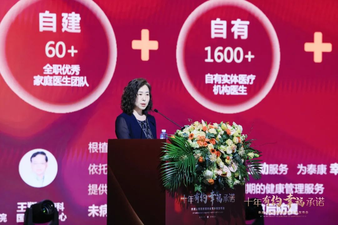 歐蕾介紹了泰康高客服務體系中,健康私享的核心內容。並重點介紹了泰康家庭醫生服務。“泰康已有超過20萬名客户簽署了家庭醫生,泰康為10萬户家庭建立了以家庭為單位的健康檔案。”歐蕾介紹説:“泰康家庭醫生根植泰康的大健康生態體系,依託互聯網醫院平台,把線下線上進行整合,主動輸出,主動提供全程、全家、全生命週期的健康管理服務,達到未病先防,看病不難,已病防變,愈後防復的目的。”