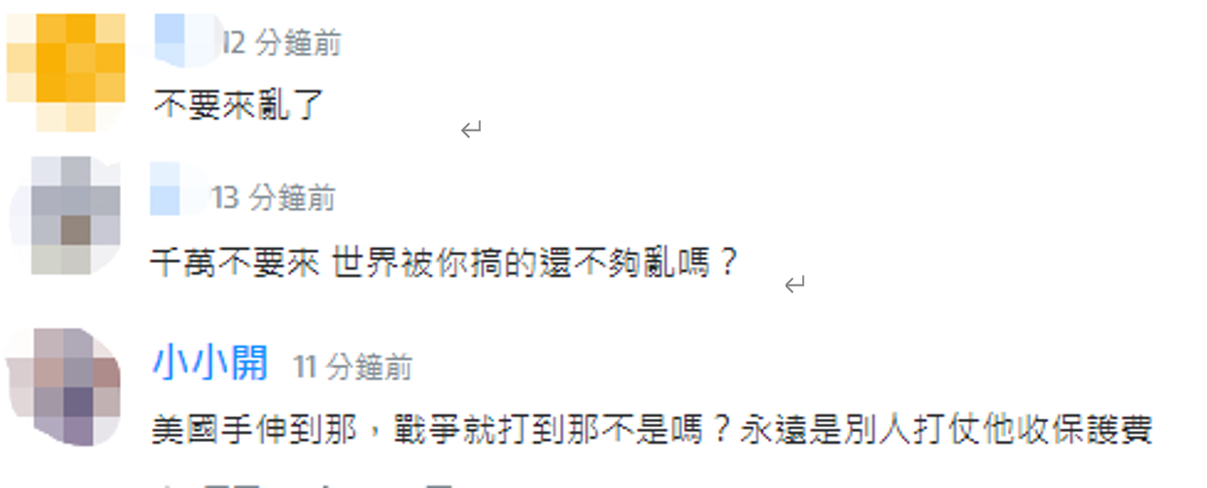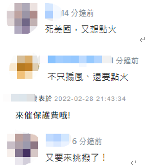 也有島內網友認為美國此舉是“又想點火”“來催保護費哦!”“又要來挑撥了!”