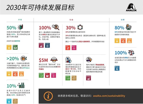 如需查看艾仕得 2030 年可持續發展目標的完整列表,請訪問 axalta.com/sustainability。