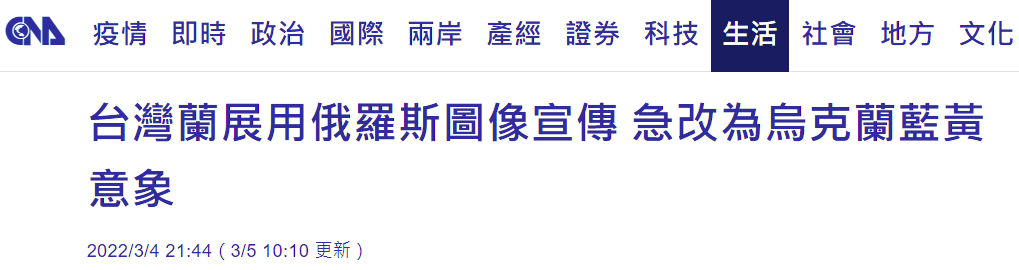 有島內網友批評台南更換蘭展宣傳背板上俄羅斯圖像之舉為蹭熱度。↓