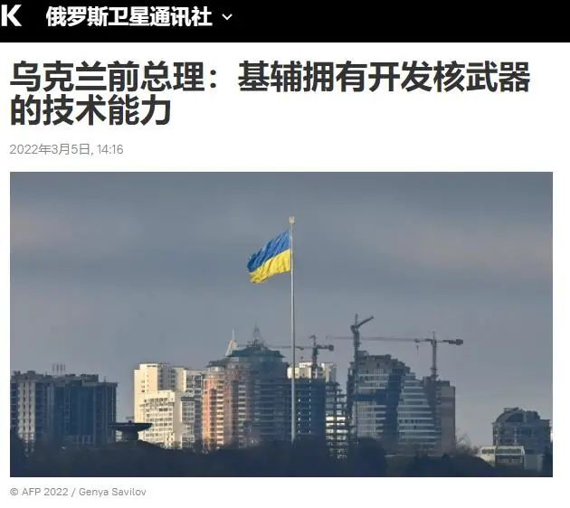 俄羅斯衞星通訊社5日報道稱,烏克蘭前總理尼古拉·阿扎羅夫在接受衞星通訊社採訪時表示,基輔擁有開發核武器的技術能力。阿扎羅夫被問及基輔是否正在進行核領域開發,他回答稱:“即使現在,在滿目瘡痍和破敗的情況下,烏克蘭也是一個高科技國家,擁有所有必要的專家和設備。”