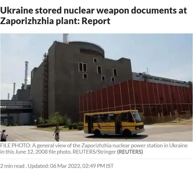 而在印度《明特報》6日的報道中,就是另外一種味道了。《明特報》的標題就非常聳動——有報道稱,烏克蘭在扎波羅熱核電站保存着核武器的製造文件,似乎想要用這樣一種觀點來佐證俄軍日前不惜冒着可能導致核電站出現泄漏的風險,武力奪佔歐洲最大核電站的深層次考量。