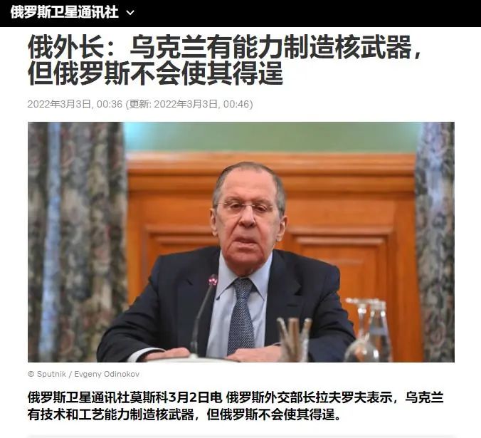 俄外長拉夫羅夫前不久在接受半島電視台採訪時説:“(烏克蘭)具有技術、工藝能力。普京總統曾説過這一點,我們的專家也對此情況發表了評論。可以負責任地表示,我們不會讓其得逞。”