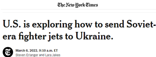 《紐約時報》6日報道稱,拜登政府的國家安全委員會工作人員花了很長時間,試圖找到一種方法,讓波蘭向烏克蘭移交一支蘇制米格-29戰機機隊,而烏克蘭飛行員瞭解如何駕駛這類飛機。作為回報,波蘭將獲得美國製造的F-16戰機。《紐約時報》説,這些戰機中有很多曾被承諾提供給台灣,這也讓該計劃變得更加複雜。