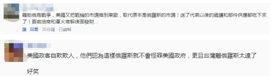 也有網友認為,美國此舉是“借俄烏戰爭,把戰機的市場推到東歐。”“美國政客自欺欺人,他們認為這樣俄羅斯就不會怪罪美國政府……”↓