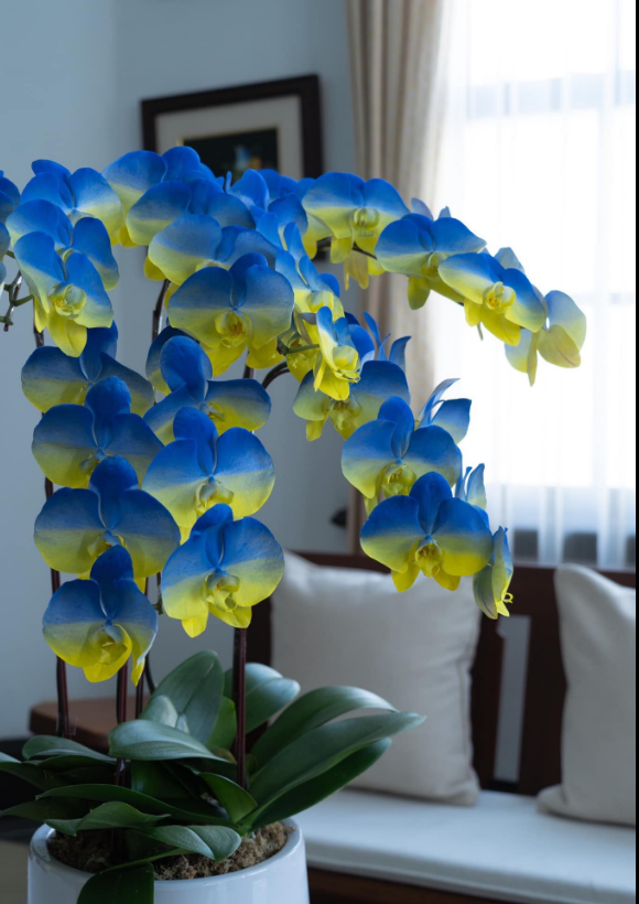 蔡英文在臉書上聲稱,她把一盆藍黃色調的台灣蘭花,放在“總統府公東廳”,她吹噓這盆蘭花是利用“最新的納米科技噴染雪白色蘭花而成”,“這項技術不會對花卉造成影響,還能延長花期,令人驚豔”。她還提到將在本月底舉行的“台灣國際蘭展”,聲稱“此次推出了烏克蘭國旗色調的蘭花,除了非常美麗,更表達台灣對烏克蘭的相挺”云云。