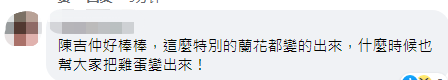 由於蔡英文在臉書中感謝了台“農委會主委”陳吉仲和台灣蘭花產銷發展協會“送來美麗的蘭花”,有網友想起了島內的“蛋荒”,諷刺陳吉仲“好棒棒”:這麼特別的蘭花都變的出來,什麼時候也幫大家把雞蛋變出來!↓